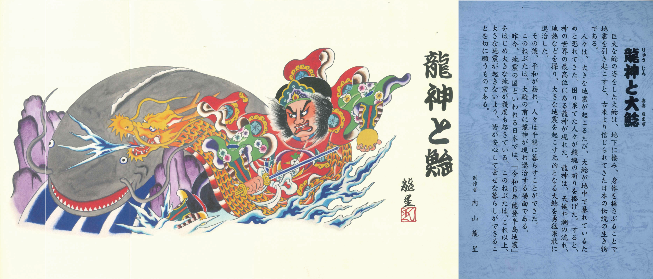 上の画像は内山龍星さんがこのねぶたに込めた想いと、その下絵です。